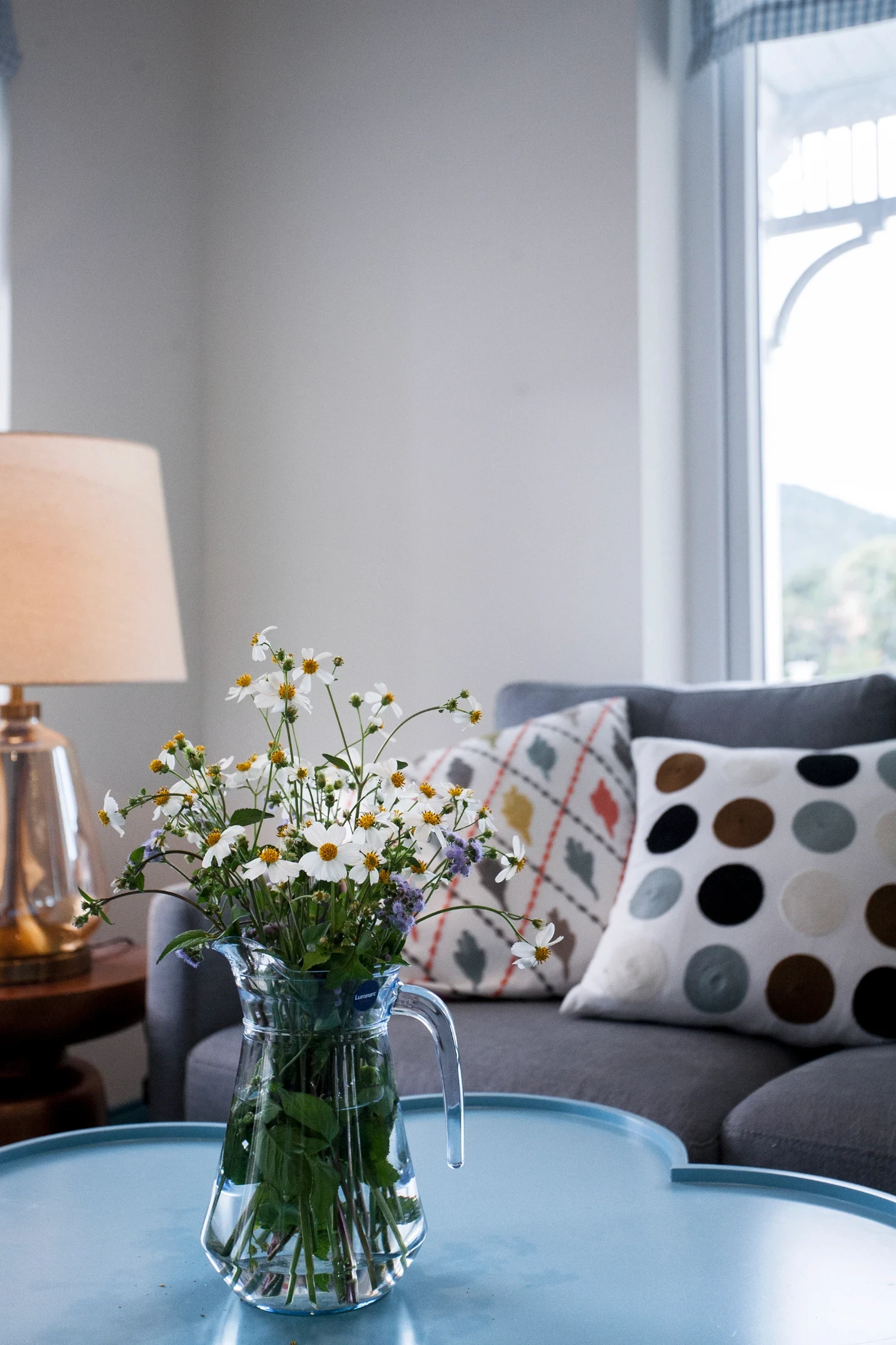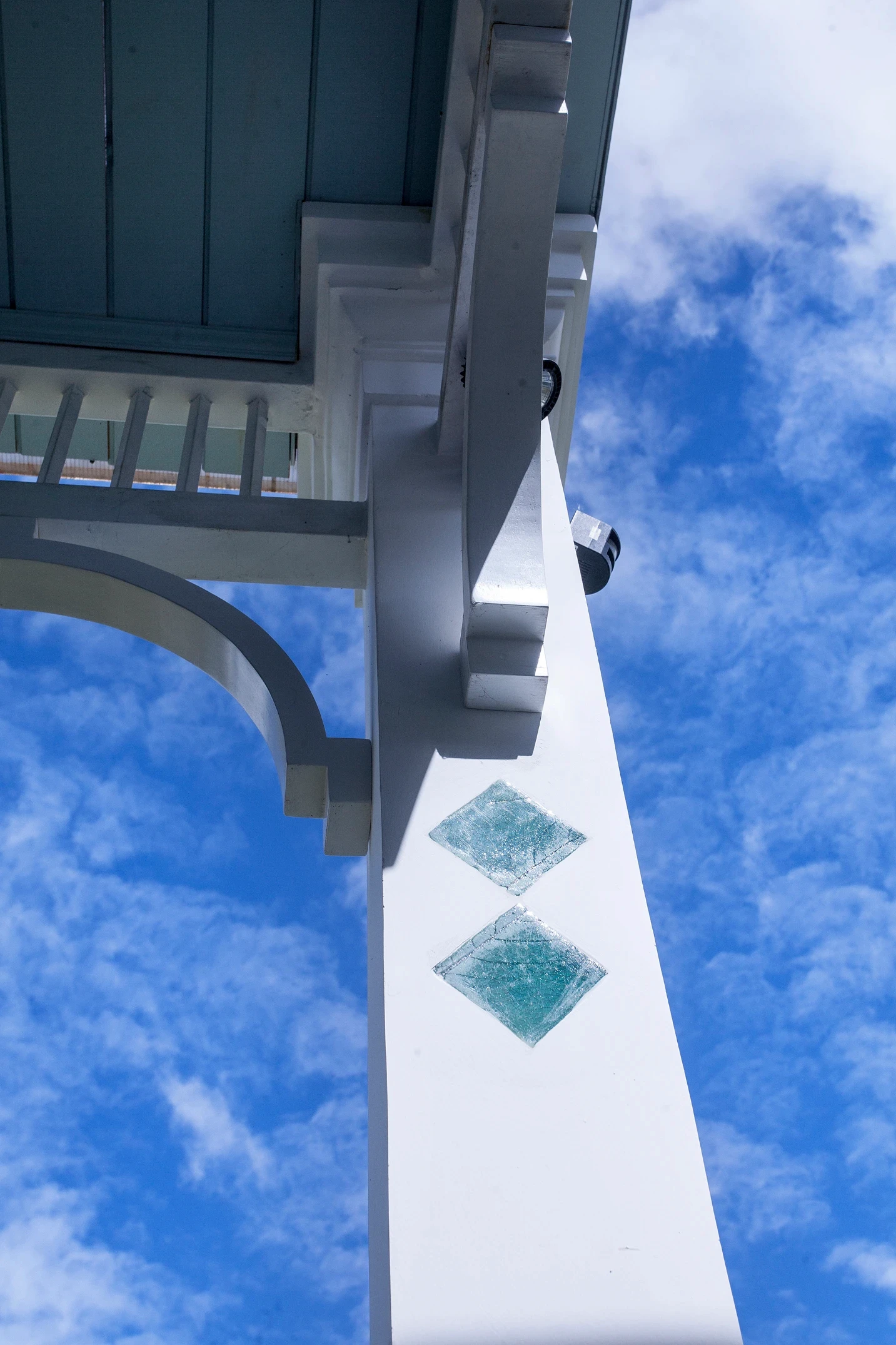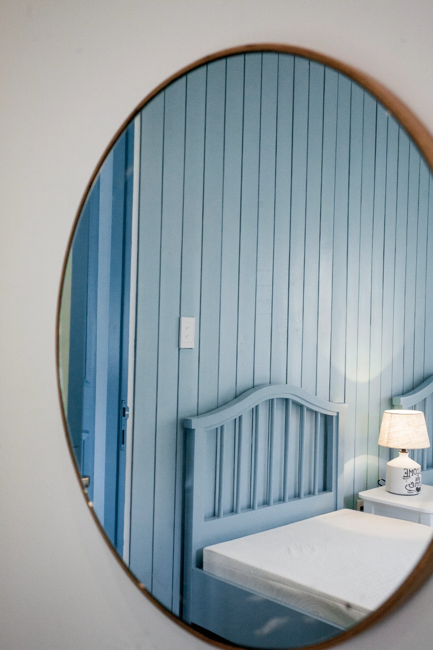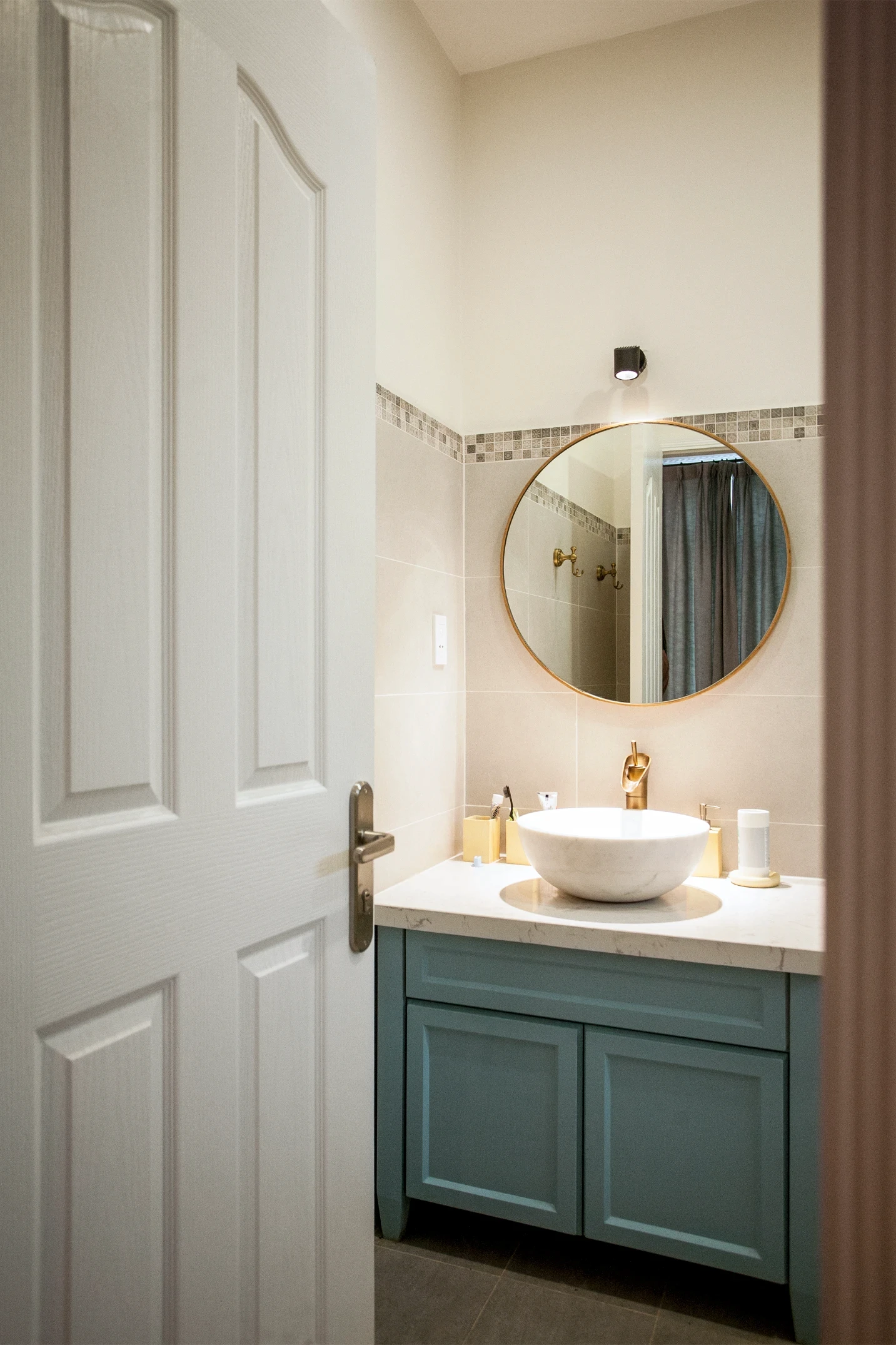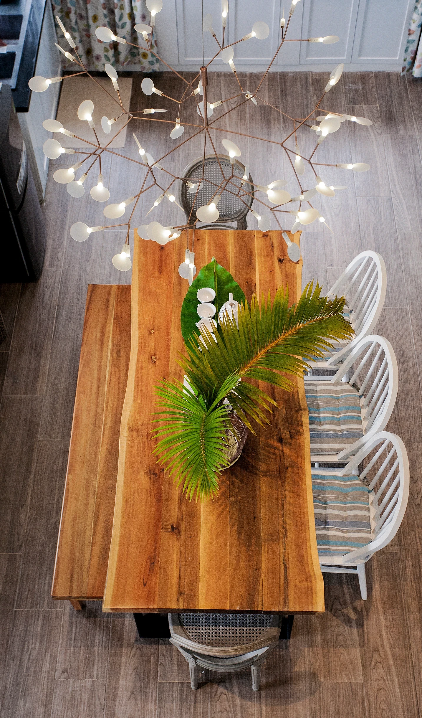 Công trình nằm trên một ngọn đồi nhỏ, là nơi cả gia đình chọn làm chốn nghỉ dưỡng cuối tuần. Ngôi nhà được thiết kế theo hướng nhẹ nhàng, hòa mình vào thiên nhiên với tông màu trắng xanh – 2 màu yêu thích của chị chủ. Nội thất là sự kết hợp giữa gỗ thông tự nhiên lấy từ Đà Lạt và các chất liệu mềm mại ấm áp, với điểm nhấn là chiếc cầu thang xoắn dẫn lên tầng áp mái – nơi chốn bí mật của tụi nhỏ. Phần sân vườn bao quanh cũng được quy hoạch và thiết kế dựa theo mong muốn trở thành nơi cắm trại, dựng lều mỗi khi gia đình có bạn bè từ nơi khác ghé thăm.