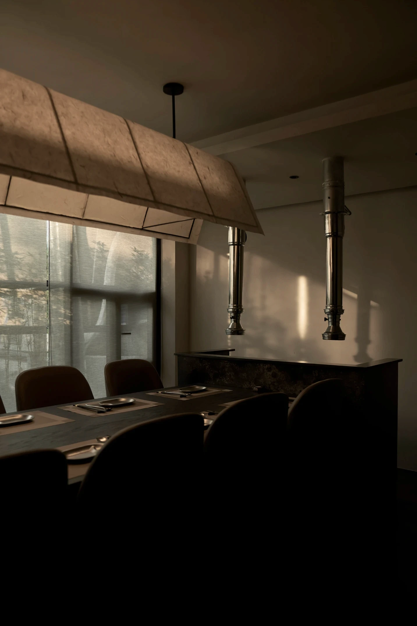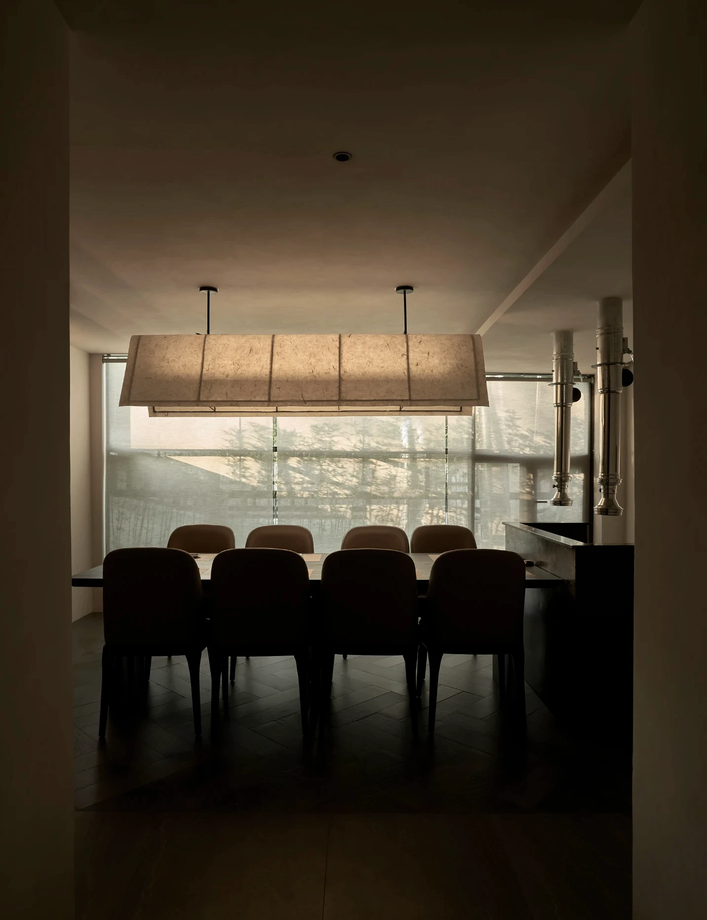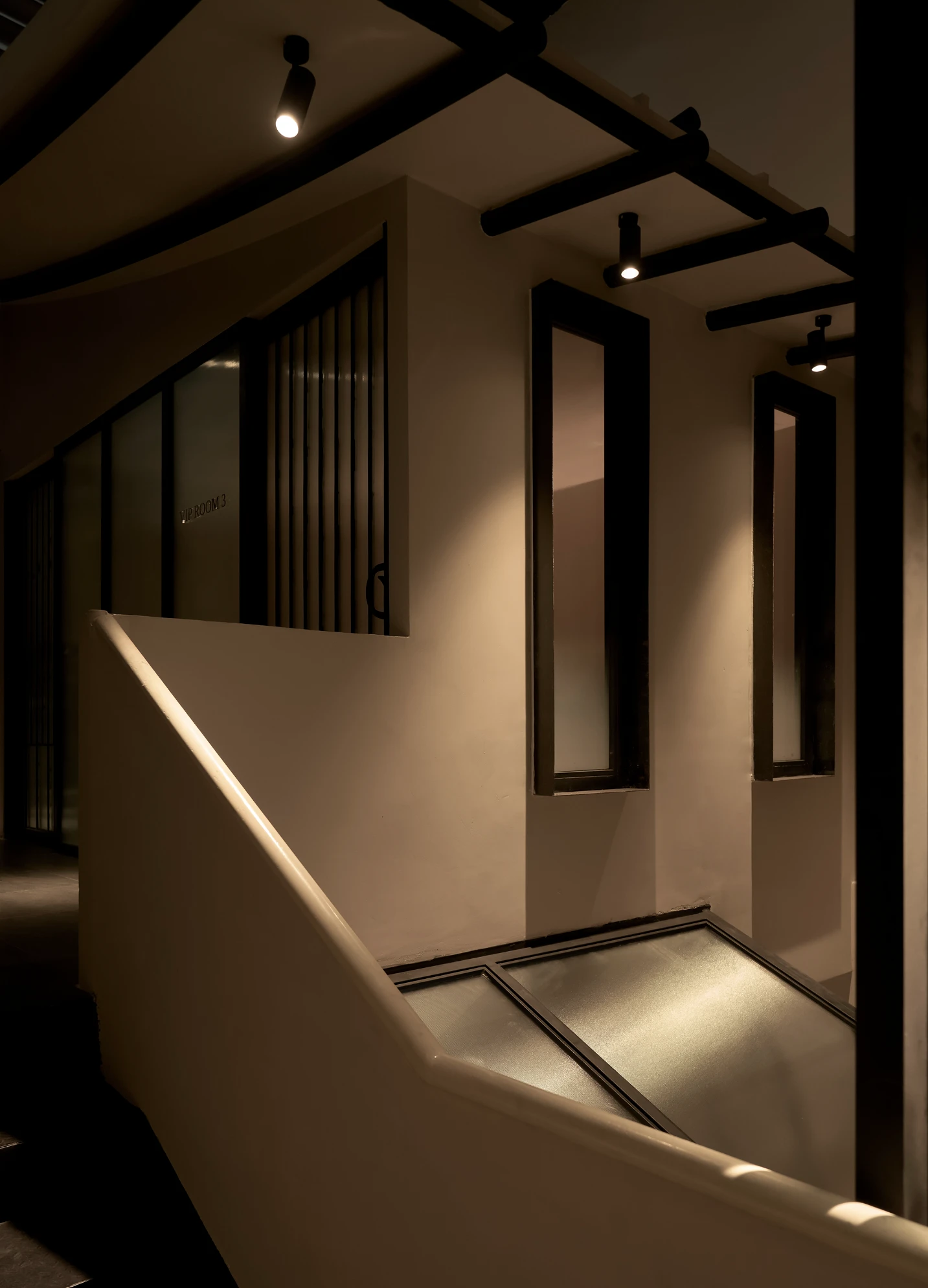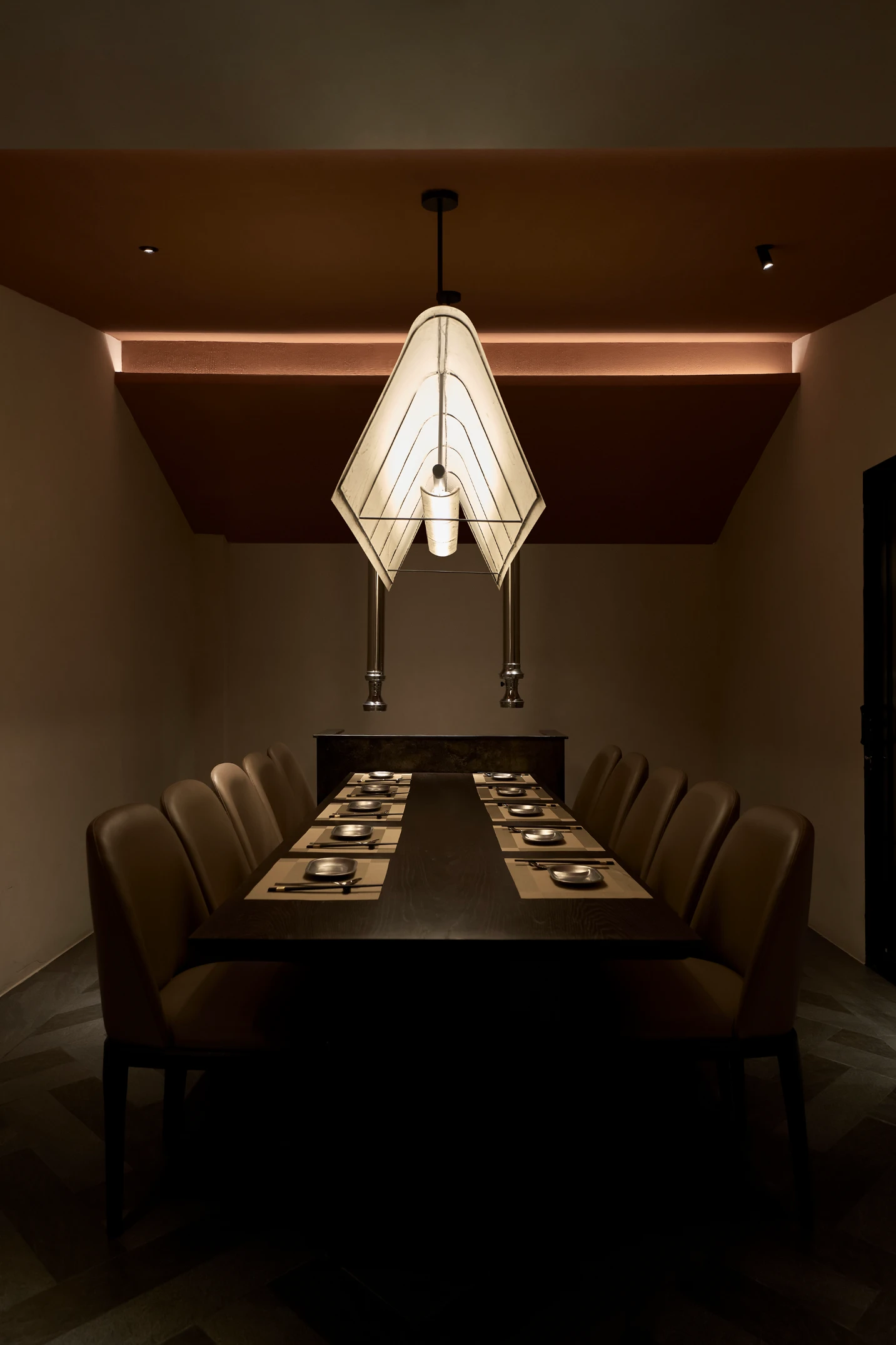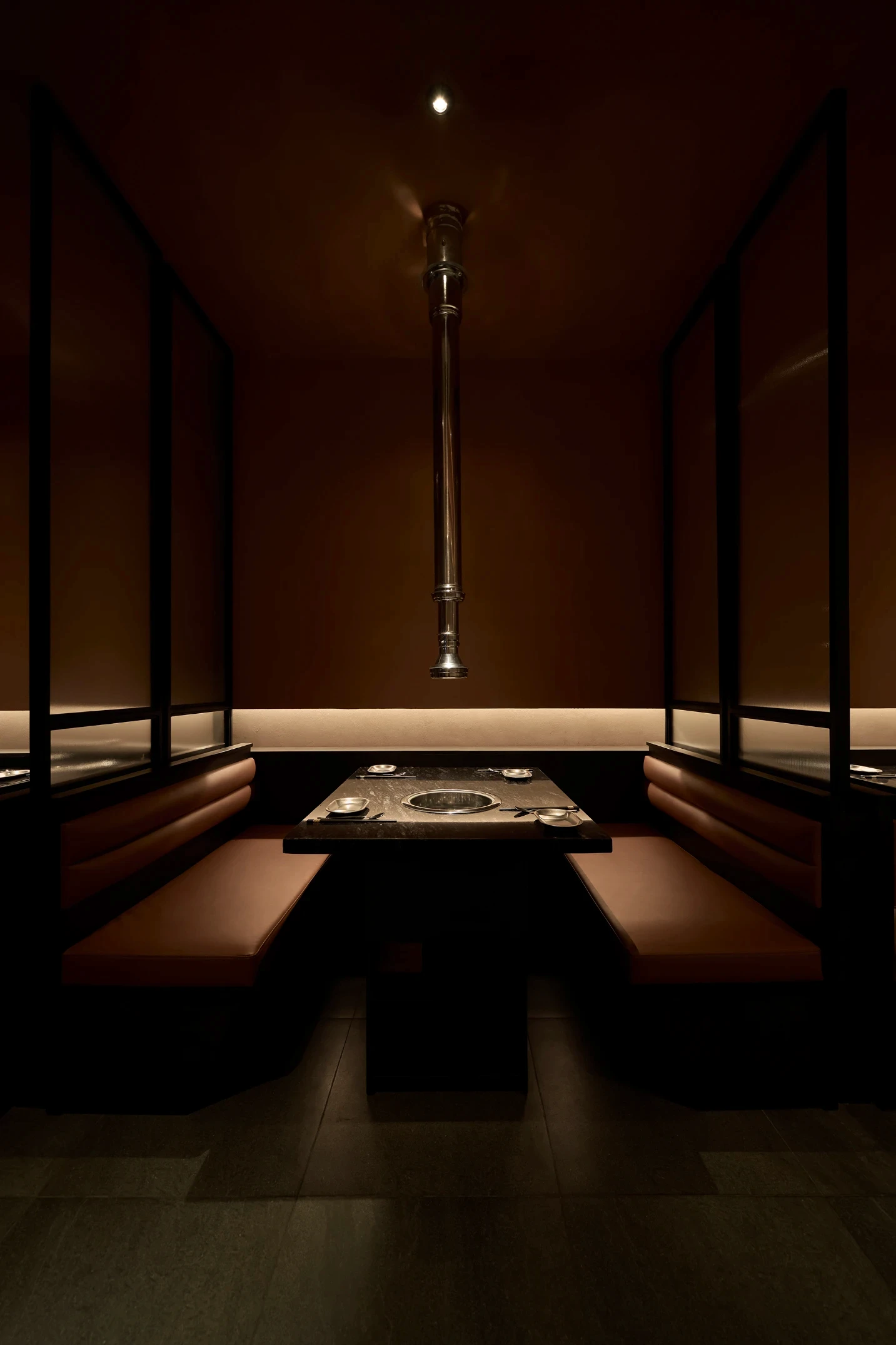 Bước qua khu vực chuyển tiếp, không gian được thu hẹp có chủ ý, tạo cảm giác tĩnh lặng trước khi mở ra khung cảnh rộng rãi bên trong nhà hàng. Giống như một “ngôi làng nhỏ” giữa lòng Sài Gòn, nhà hàng Hàn Quốc Dolgabi mang đến không gian chung để thực khách vừa thưởng thức ẩm thực, vừa giao lưu kết nối. Đồng thời, những “ngôi nhà” nhỏ ở các tầng cao hơn mang đến sự riêng tư cho những ai muốn tìm một góc yên tĩnh hơn.