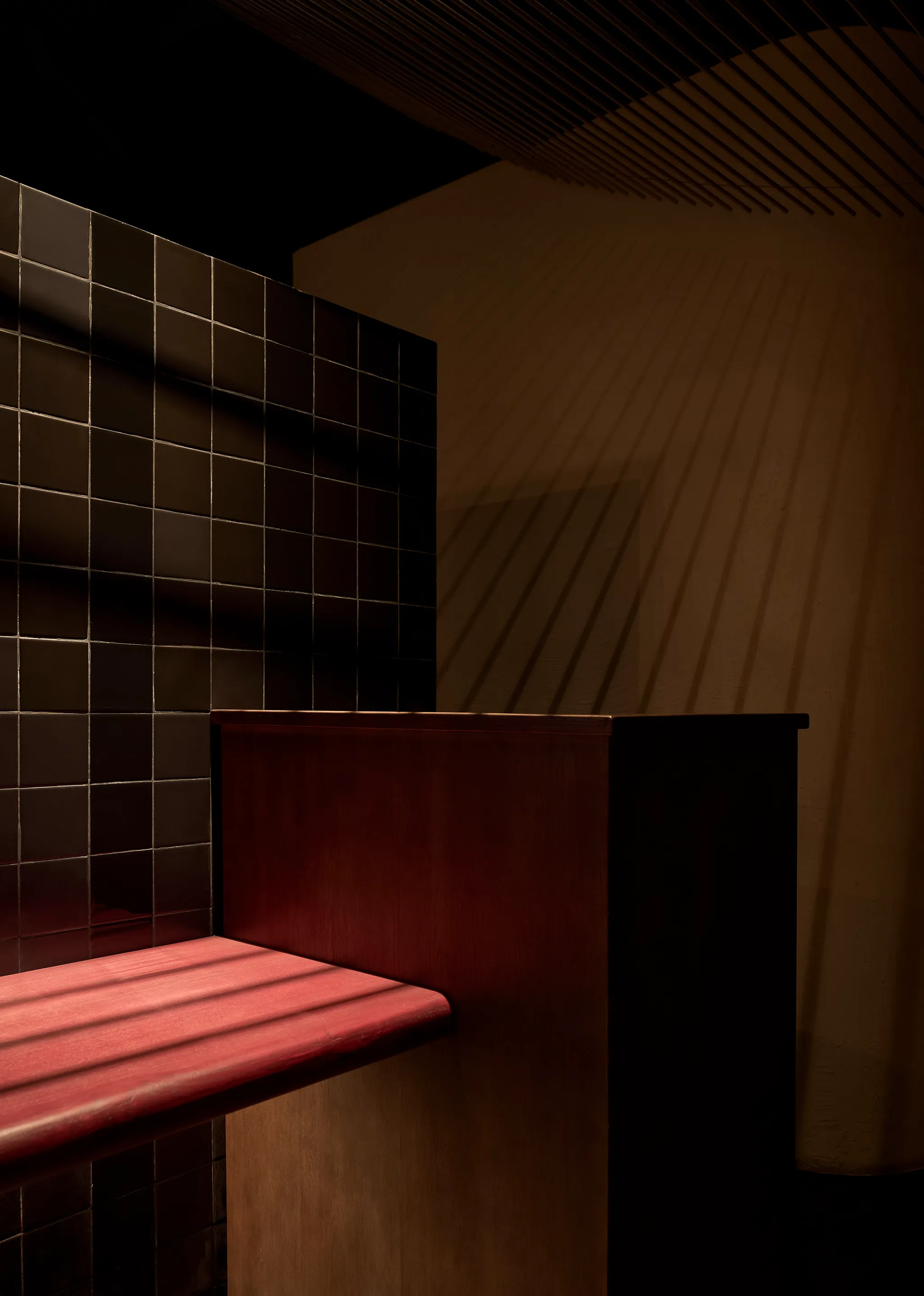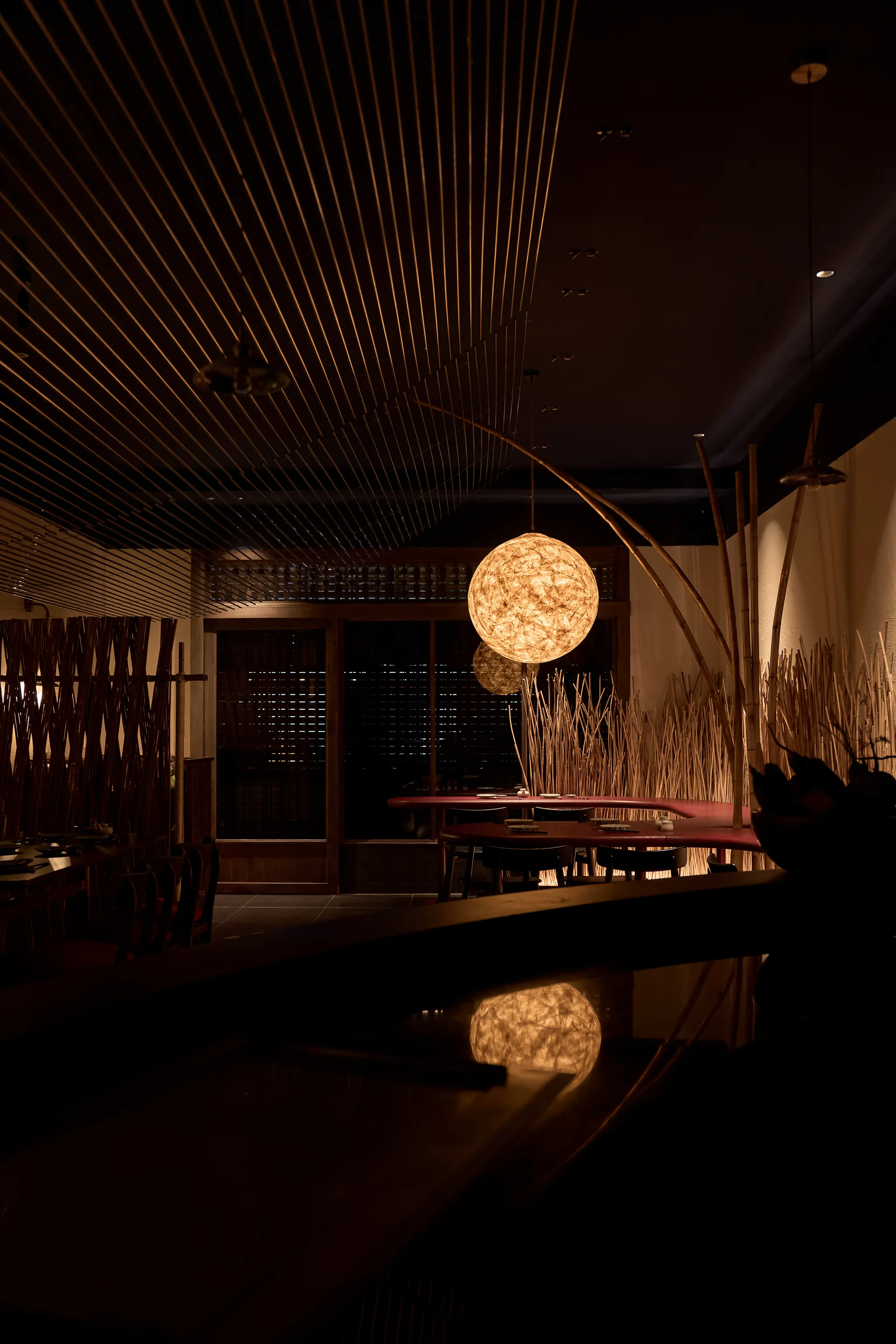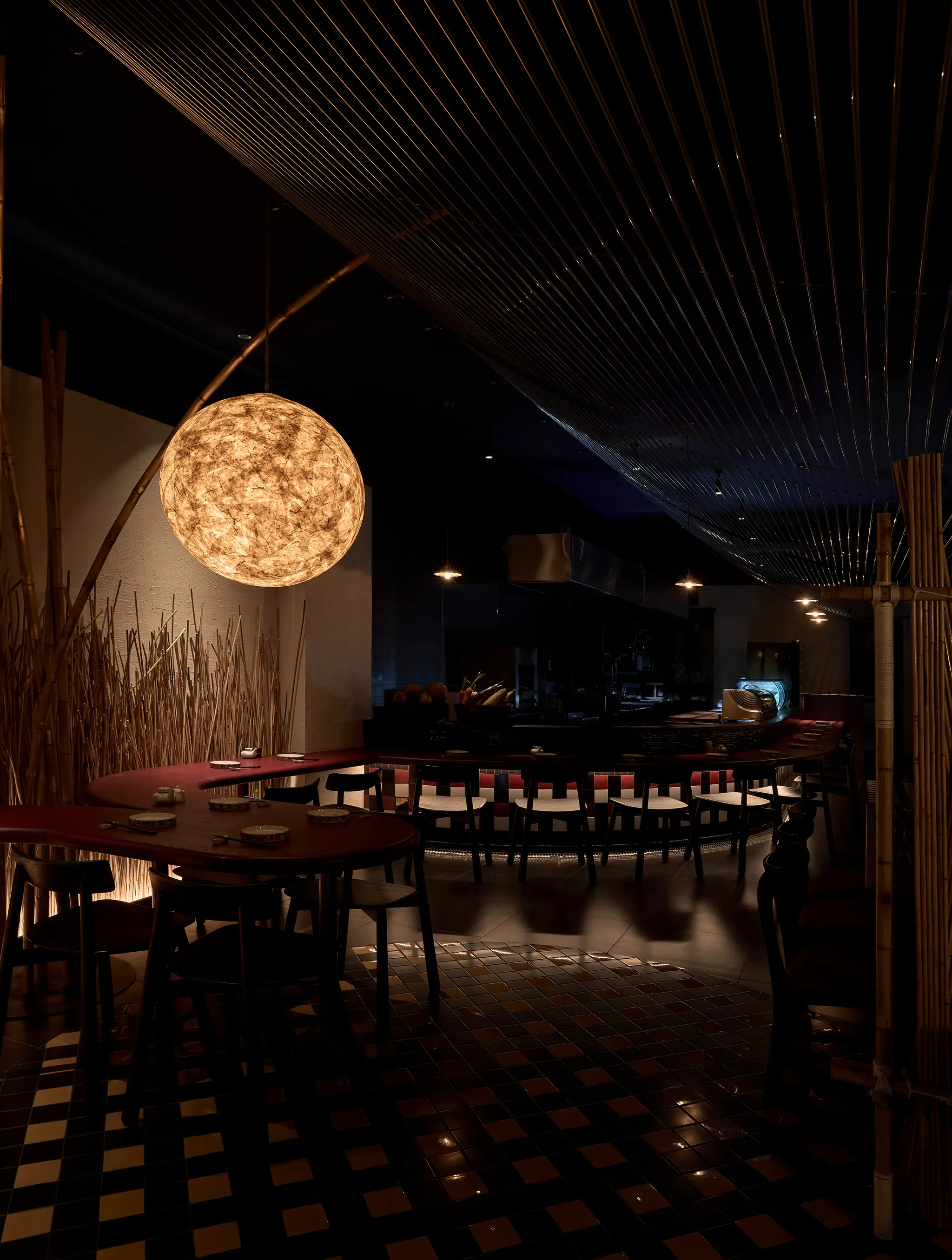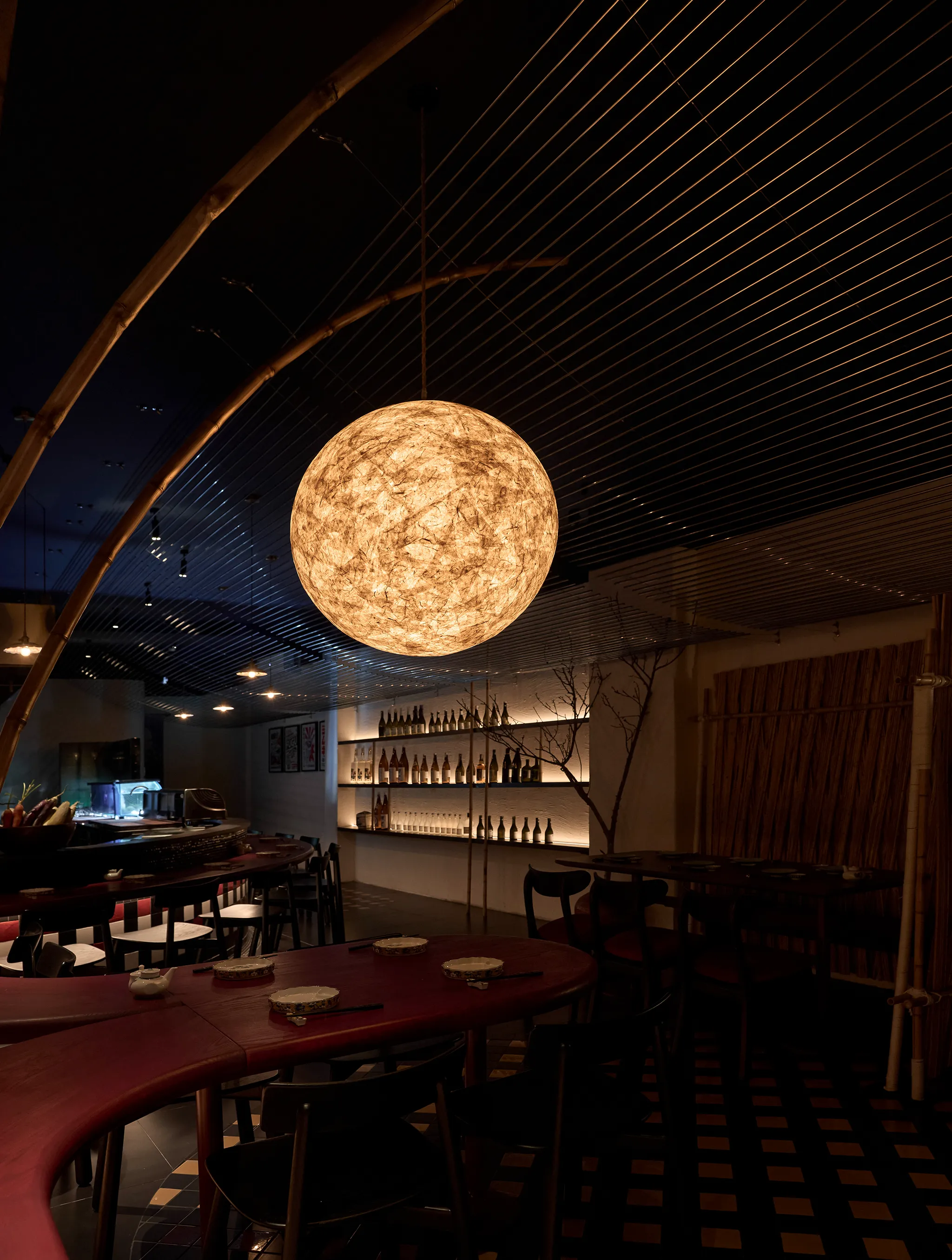 Concept lấy cảm hứng từ một buổi chiều tà cắm trại trong rừng. Nơi này giống như một túp lều vừa đủ nhỏ để một nhóm bạn hoặc gia đình có thể quây quần, chia sẻ với nhau vài câu chuyện ấm cúng thân mật. Phần trần trang trí bằng kim loại nhằm tạo ra sự tương phản về vật liệu và tạo một chút hiệu ứng cho không gian.
